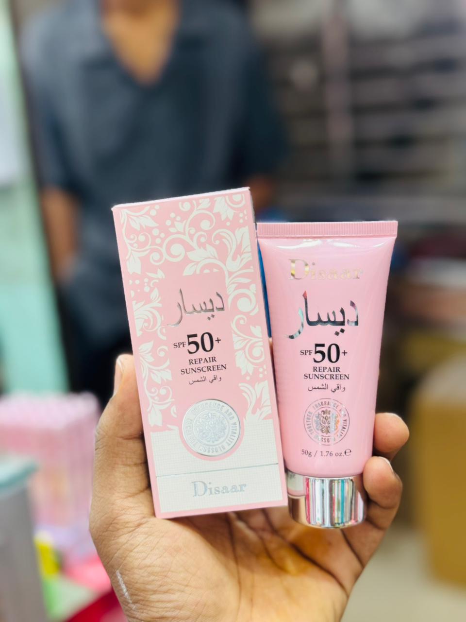 Protect and nourish your skin with the Disaar SPF50+ Repair Sunscreen, designed to shield your skin from harmful UV rays while helping repair and hydrate for a healthy, glowing look.