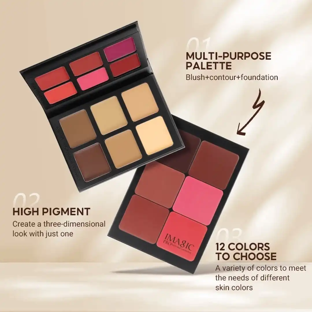 IMAGIC Professional Blush, Contour & Concealer Palette | 12 Cream Shades | Long-Lasting, Blendable & Waterproof – All Skin Types