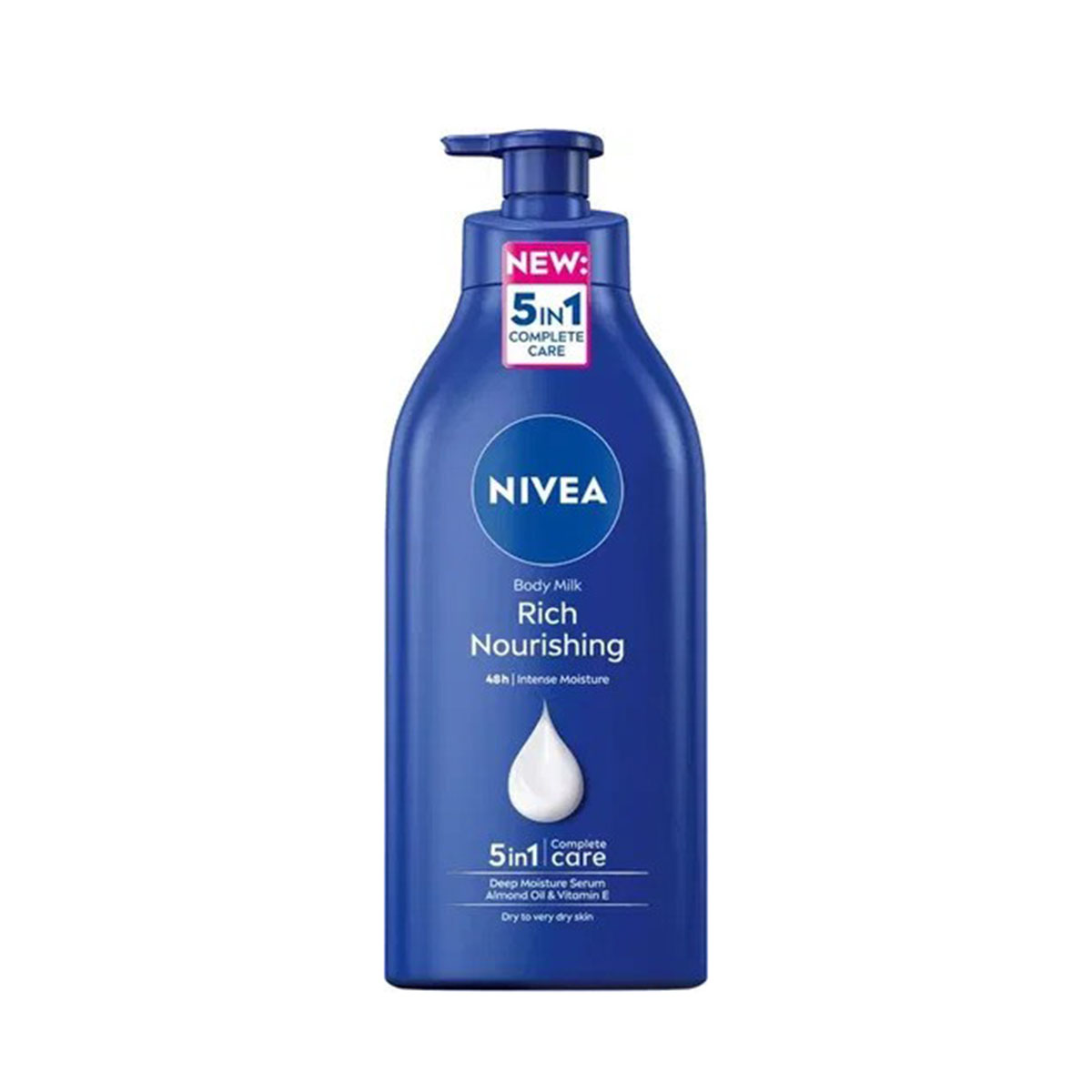 Transform your dry skin into deeply* moisturised and noticeably smoother skin for 48 hours with our NIVEA Rich Nourishing Body Lotion. The formula contains NIVEA Deep Moisture Serum to lock in deep* moisture leaving you with noticeably smoother skin for 48 hours. With 2 times more Almond Oil** to moisturise your skin. The body moisturiser reduces the roughness of very dry skin after the first application. The body cream lotion gentle texture means it is easily applied without any fuss and absorbs quickly.