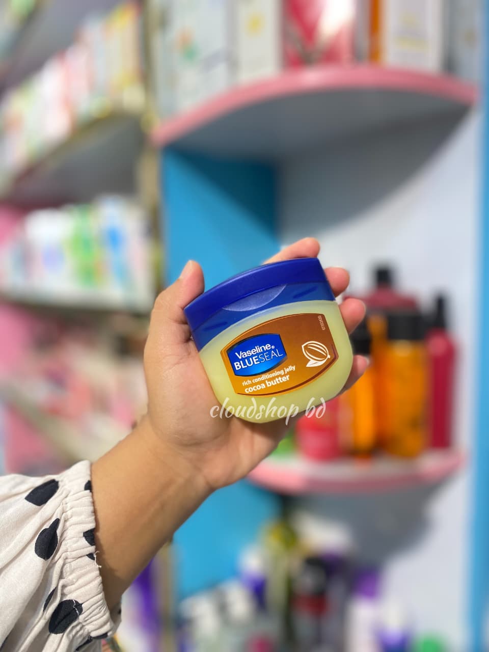 - Vaseline Blue Seal Cocoa Butter Petroleum Jelly locks in moisture to help restore dull, dry skin with a light cocoa fragrance
